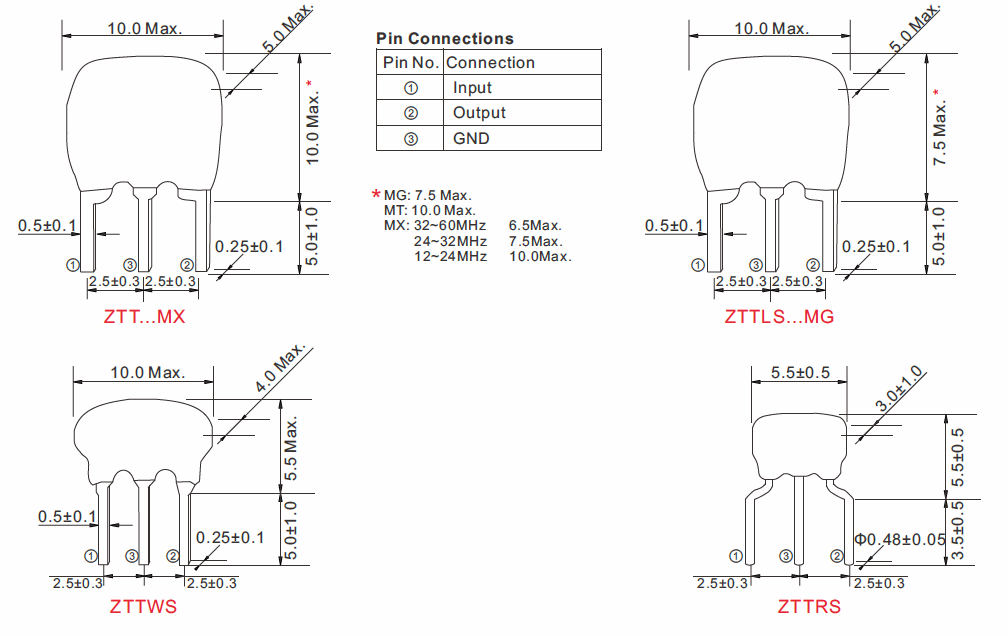 Product > Ceramic Device List > Ceramic Resonator > ZTT Resonator DIP