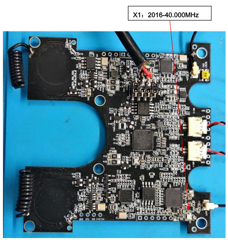 Supplementary Information | Original Circuit Parameters Original circuit crystal oscillator: 2016-40.000MHz-12PF, 10PF, +/-10PPM Matching capacitance: 12PF (Crystal oscillator PIN2 and PIN4 connected to GND) Power supply: DC 5V (Red and black wires) Circuit Board Diagram: |