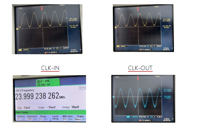 Original crystal oscillator on PCBA: 2016/24MHz/12pF, matching capacitors removed: C1=C2=NC. Oscillation circuit test results are as follows: