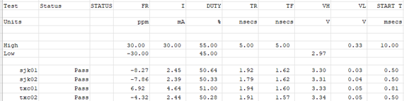 • b. Standalone crystal oscillator test results (S&A 280, room temperature): All standalone crystal oscillator samples passed the test.