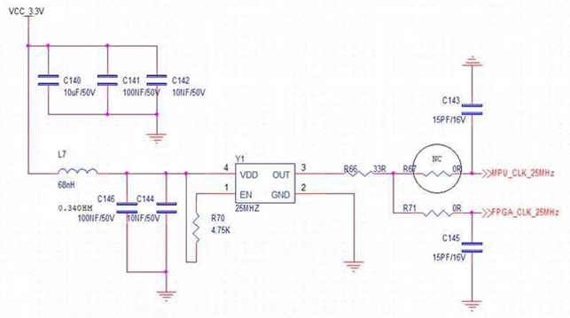 The customer’s design includes a reserved circuit to drive two CPU main control chips. The traces from the crystal oscillator output terminal to the IC input terminal are excessively long and routed via two double-sided vias, resulting in significant circuit interference and high parasitic capacitance/inductance.