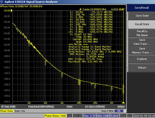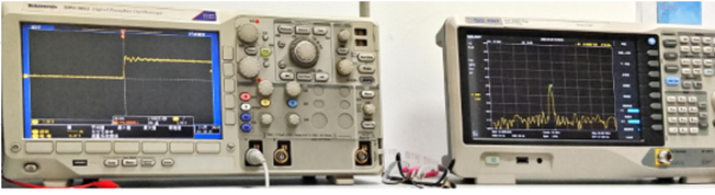 • b. Meanwhile, a spectrum analyzer was used to detect the oscillation output frequency of the crystal oscillator via non-contact electromagnetic wave detection. The status of whether the crystal oscillator output frequency stopped oscillating or drifted during the abnormal (loss-of-lock) condition is shown in the figure below.
