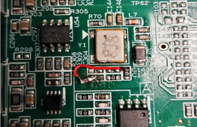 • a. Comparative testing shows that: When an oscilloscope probe touches the position of C145 on the circuit board with the SJK crystal oscillator, an instantaneous clock loss-of-lock phenomenon occurs in the backend chip (during loss-of-lock, the backend LED on the board turns OFF, and the test point TP58 = LOW).